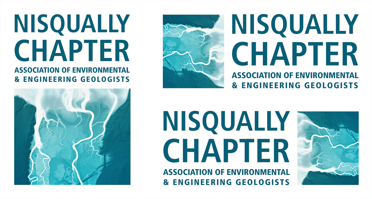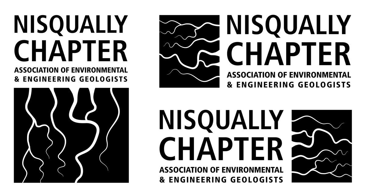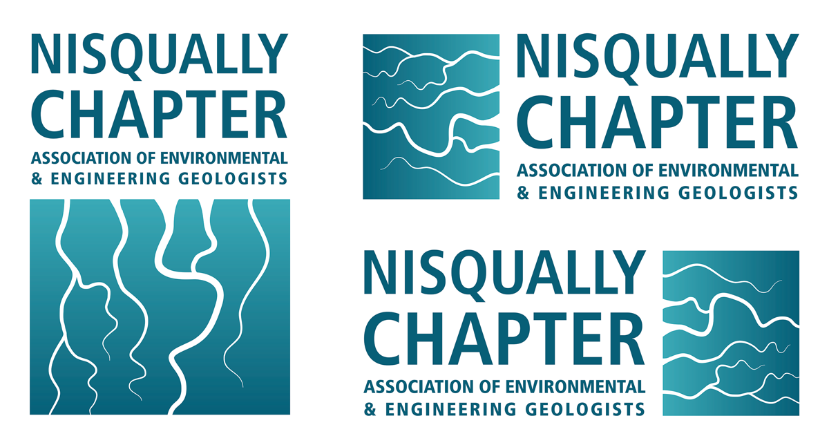 Logo set designed for the local Nisqually Chapter of the Association of Environmental and Engineering Geologists. The Design was based on the river and tidal channels of the Nisqually River Delta.