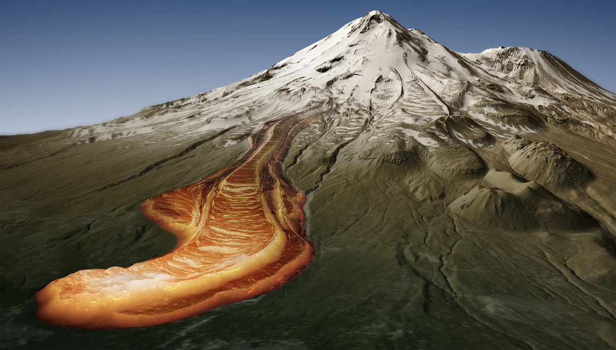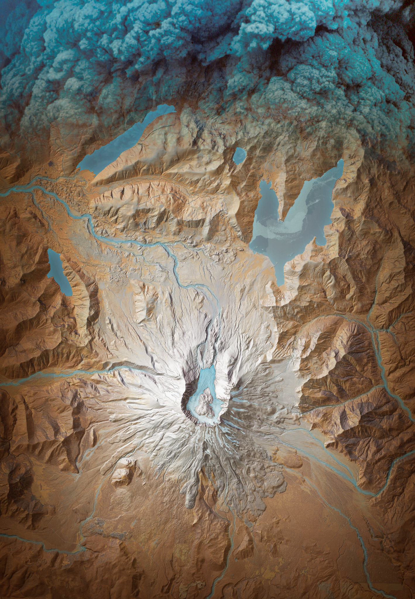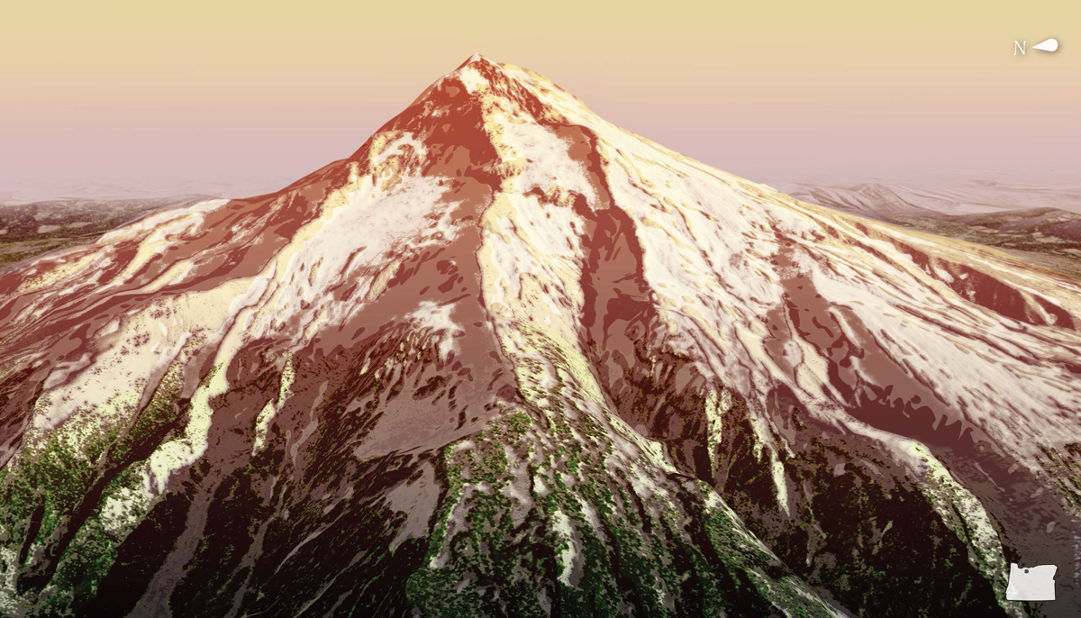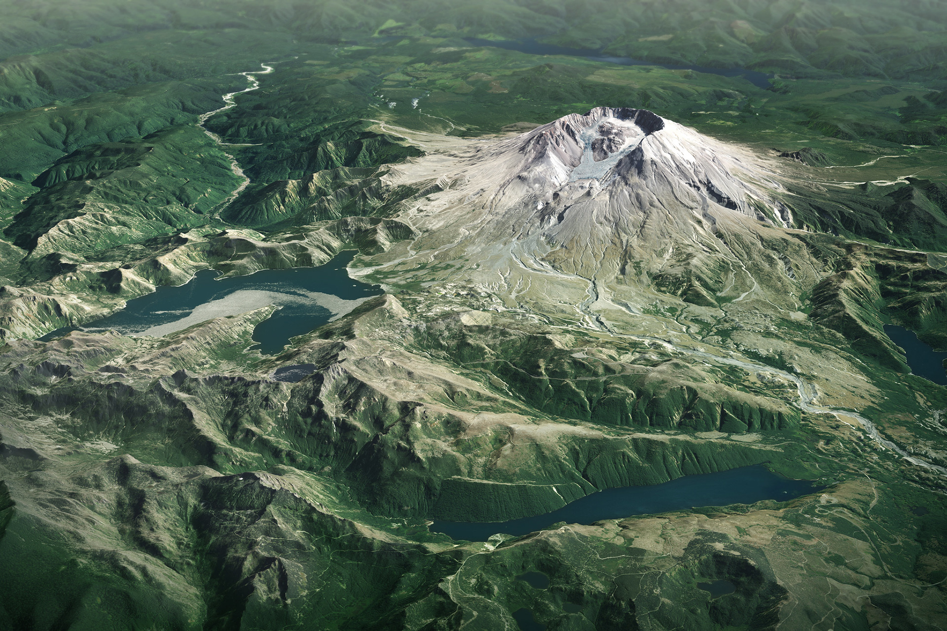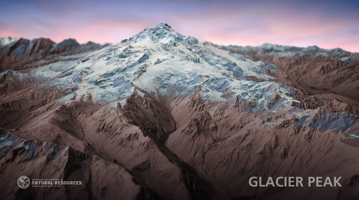 Lidar-derived images of volcanoes in the Cascade Range of the Pacific Northwest.