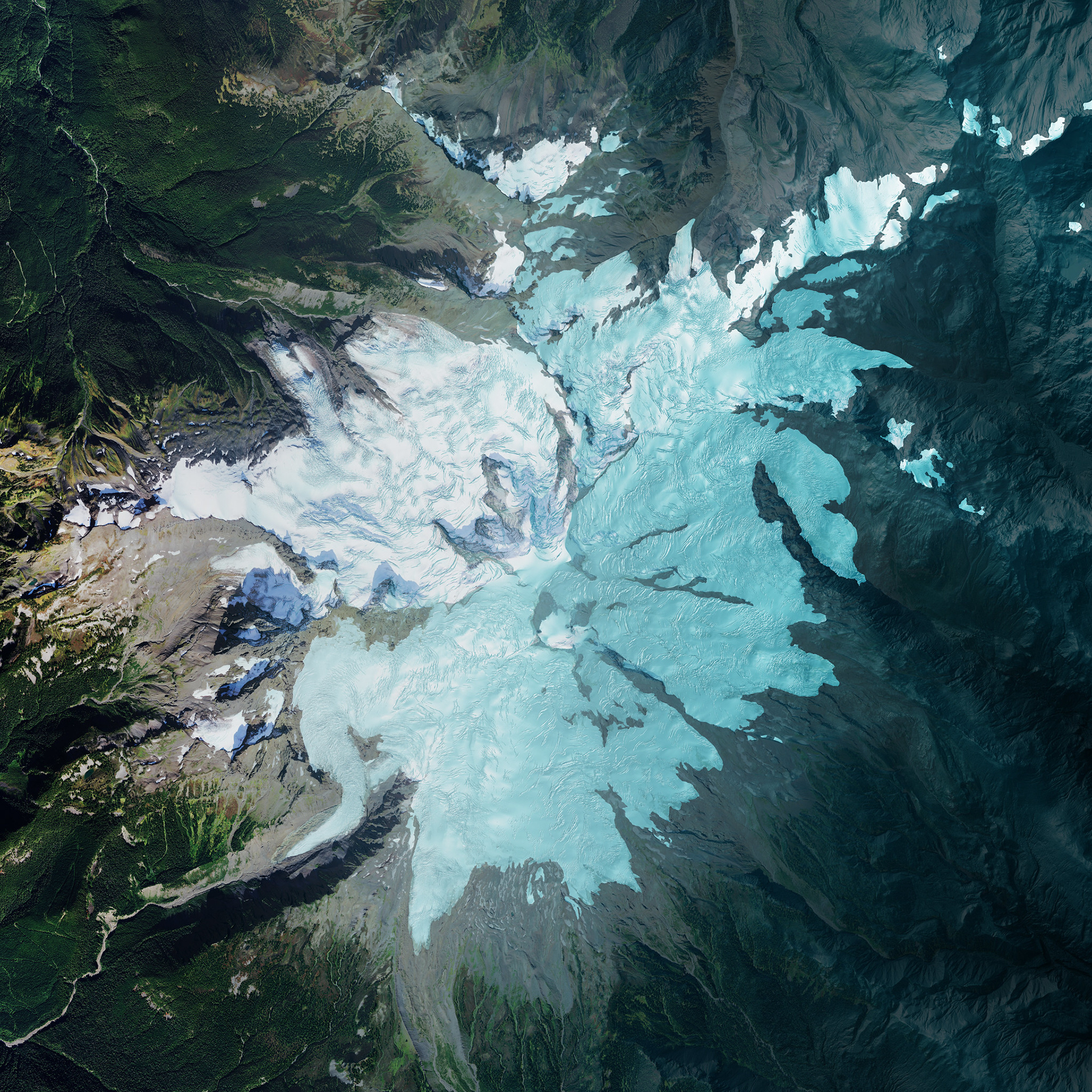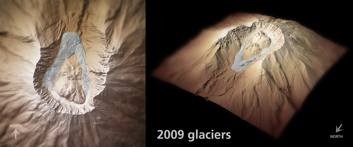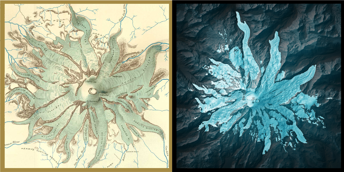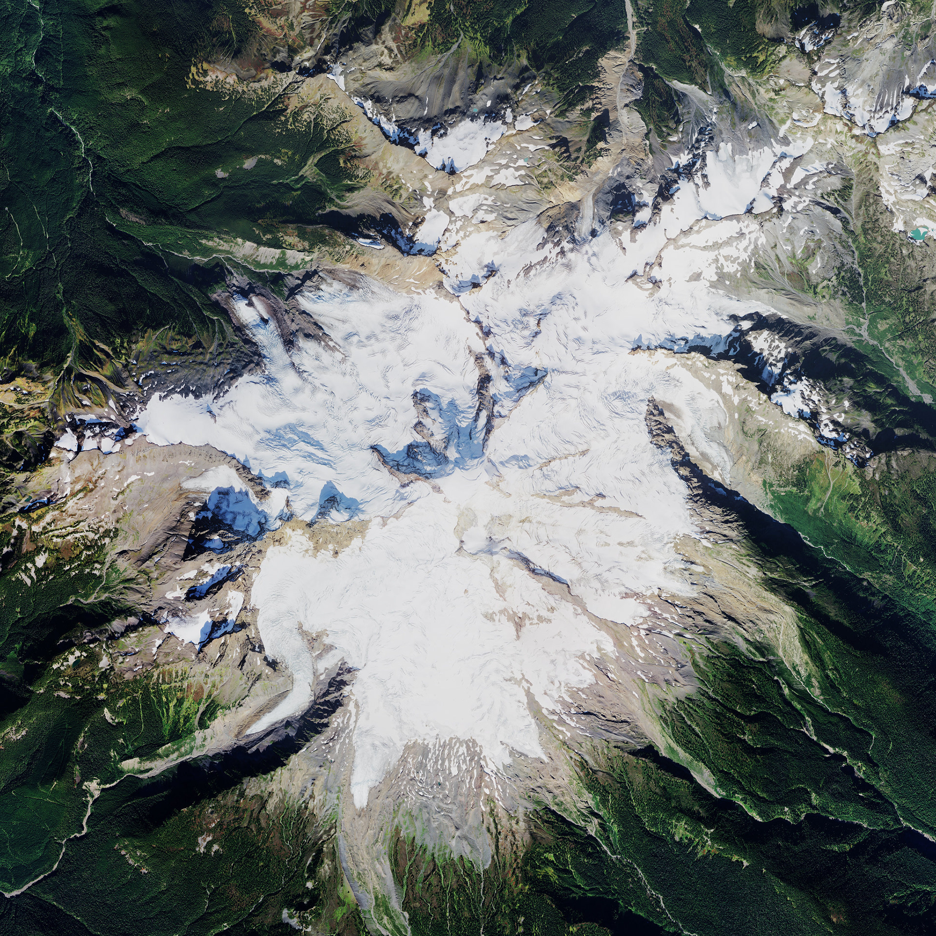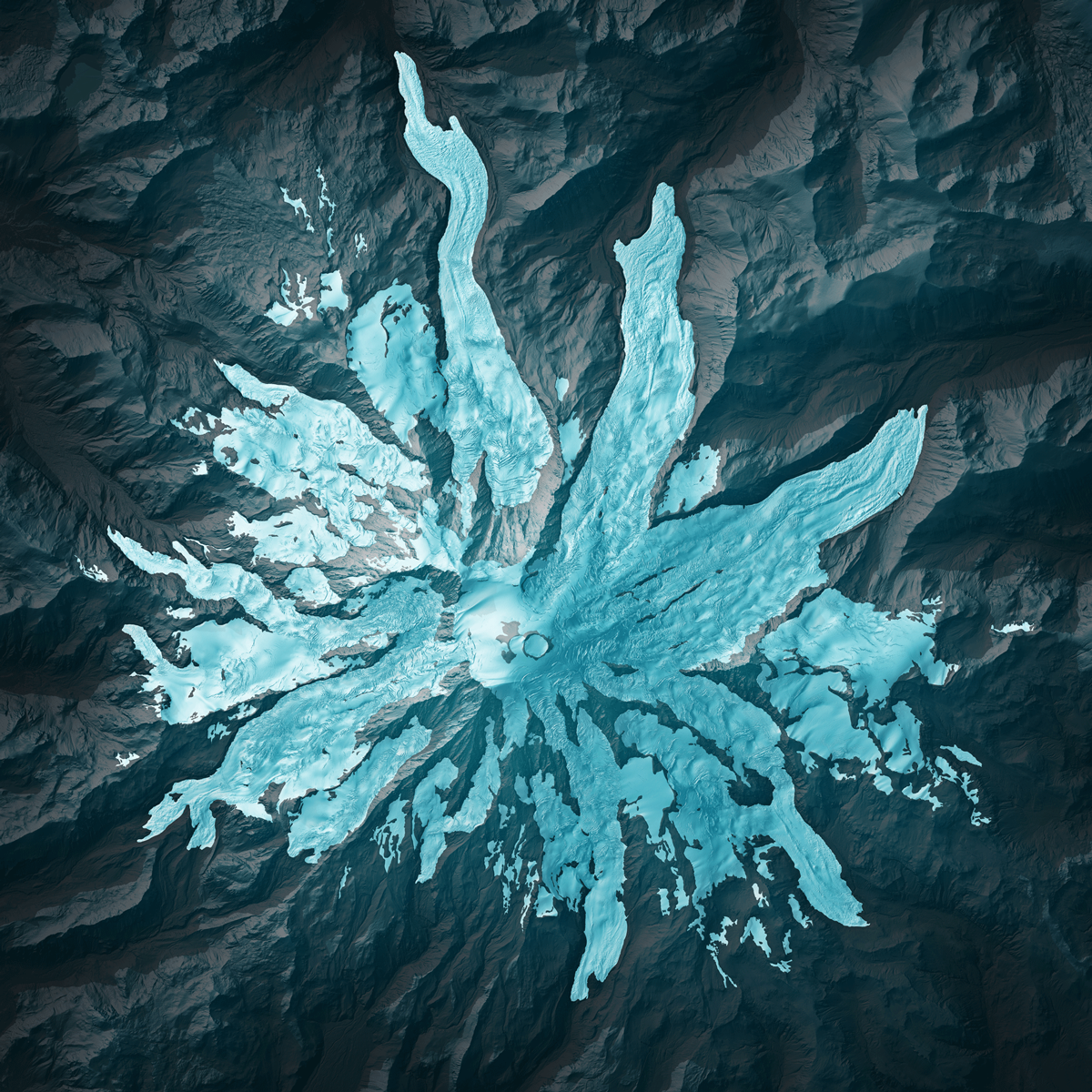Lidar-derived images of volcanoes in the Cascade Range of the Pacific Northwest.