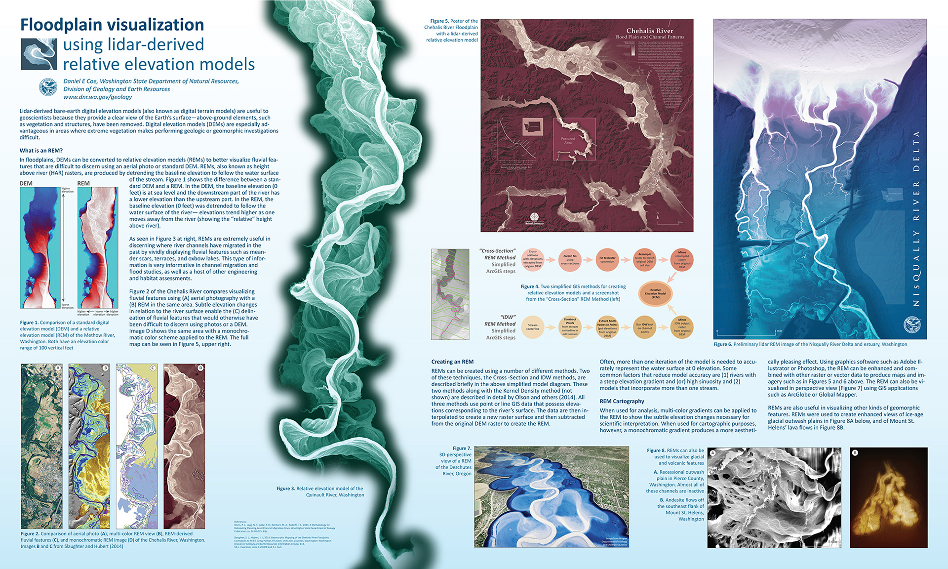REMs are extremely useful in discerning where river channels have migrated in the past by vividly displaying river features such as meander scars, terraces, and oxbow lakes. This type of information is very informative in channel migration and flood studies, as well as a host of other engineering, habitat, and cultural assessments.