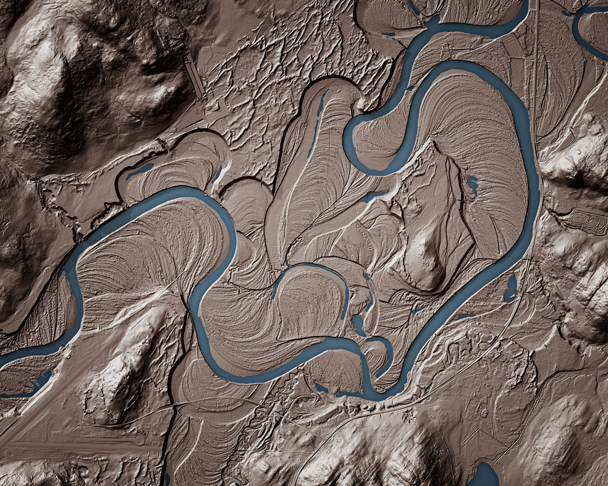 Lidar-derived images and animation of the Ivalo River in northern Finland, showing geomorphic features including abandoned channels and meanders, scroll bars, and dunes.
