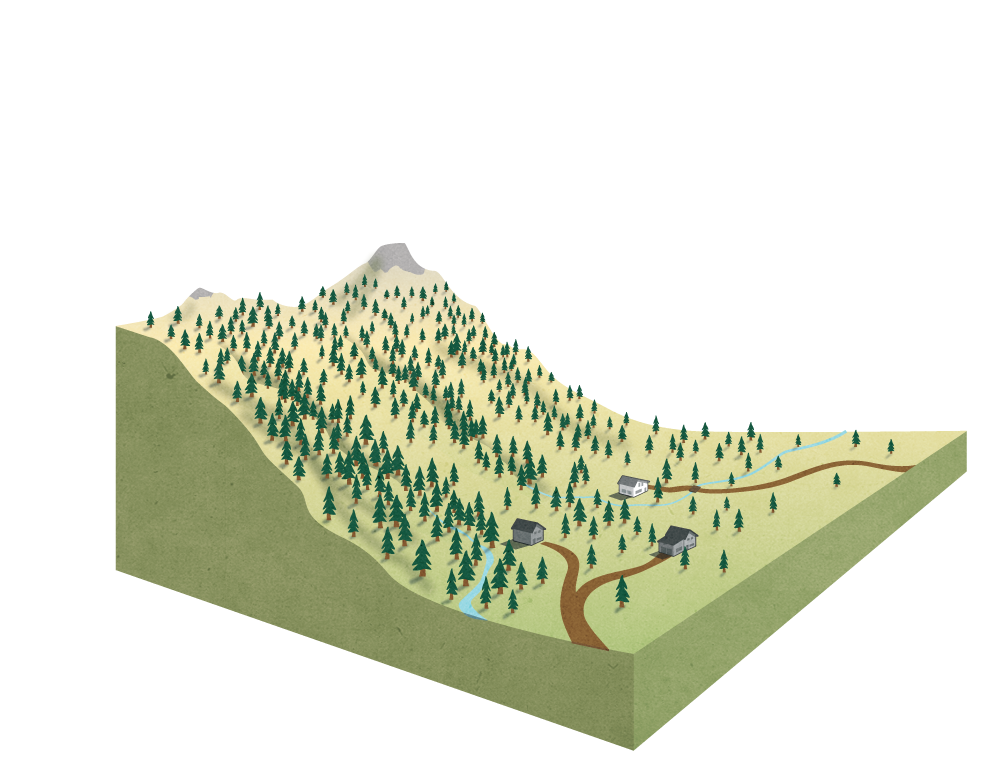 Post-wildfire debris flow animation showing how this type of natural hazard can develop on steep forested slopes. Made for the Washington Geological Survey.