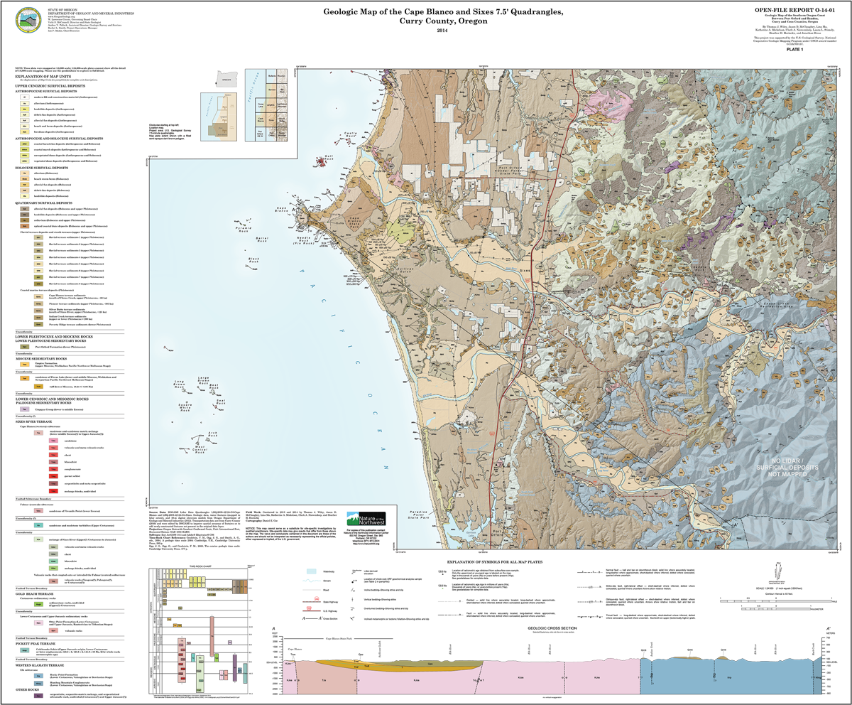 Geologic Map of the Cape Blanco and Sixes 7.5-minute quadrangles, Curry County, Oregon, by Thomas J. Wiley and others, 2014.