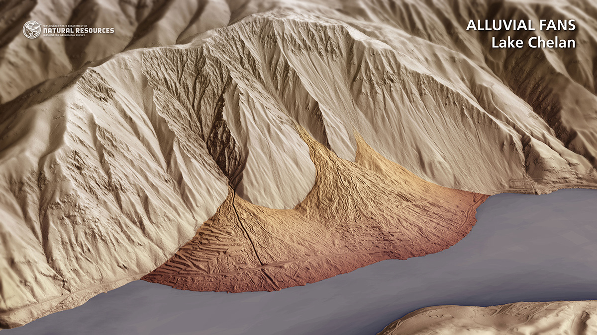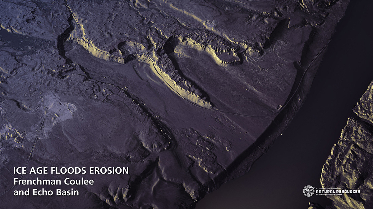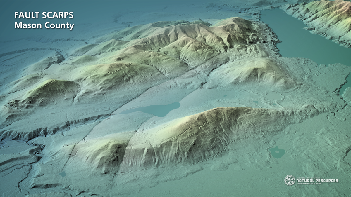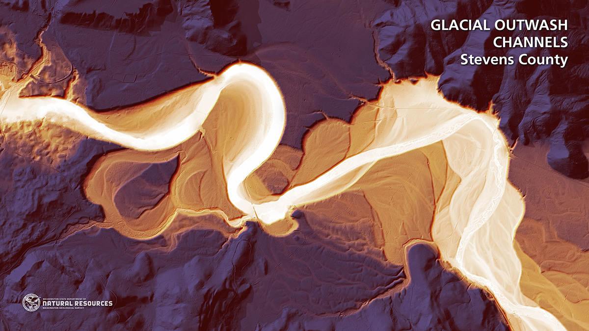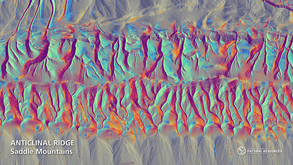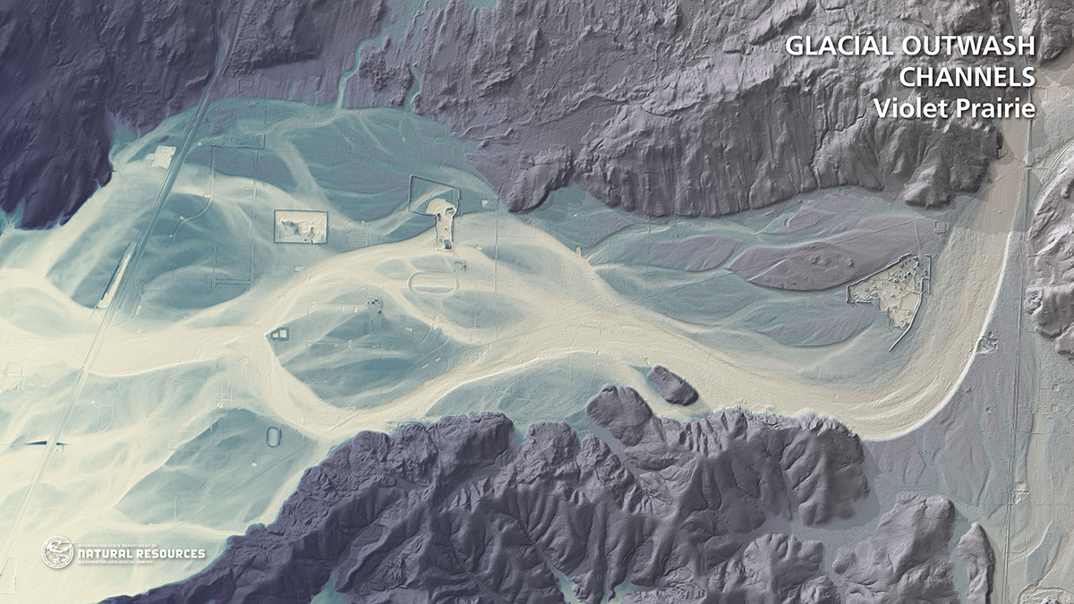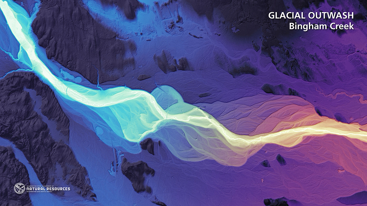 Lidar-derived images of geologic and geomorphic features in the state of Washington, USA. Made for the Washington Geological Survey.