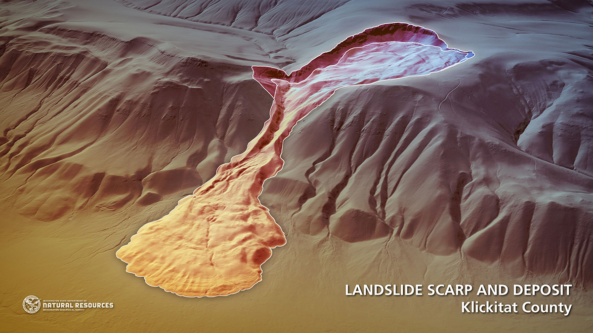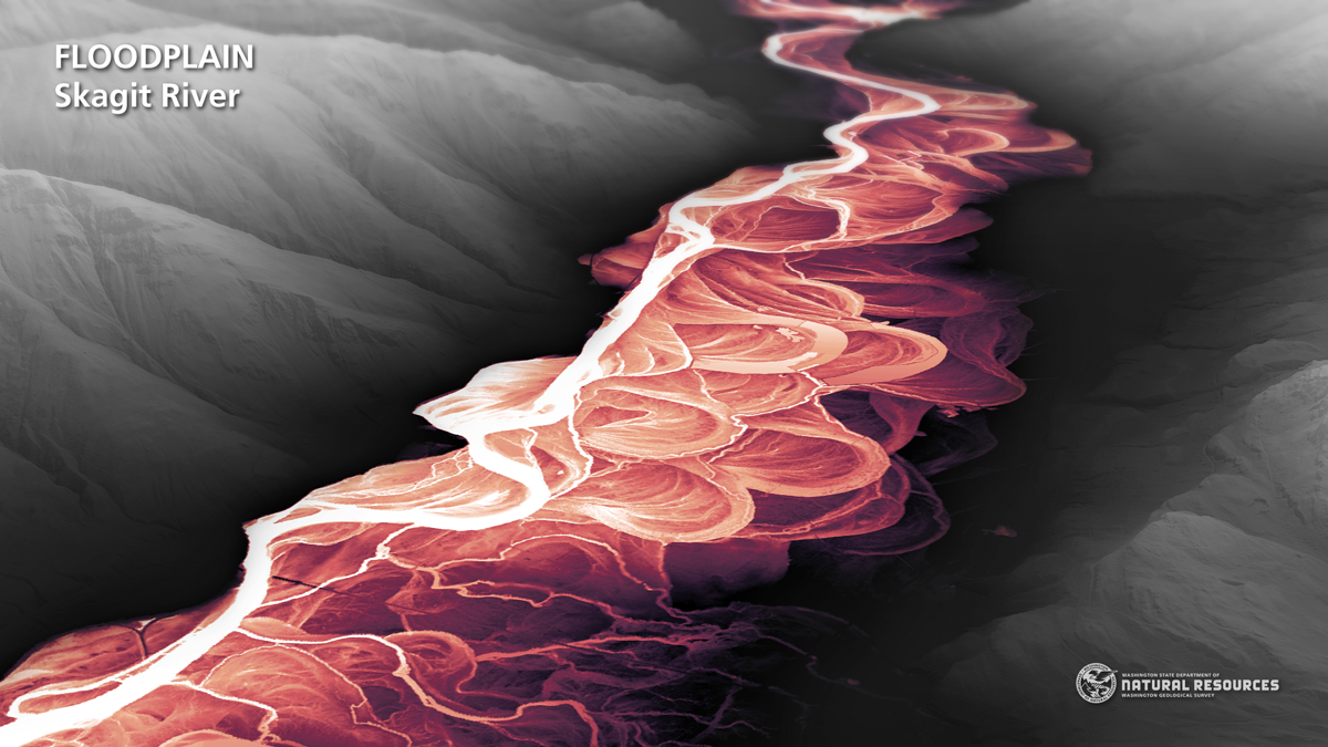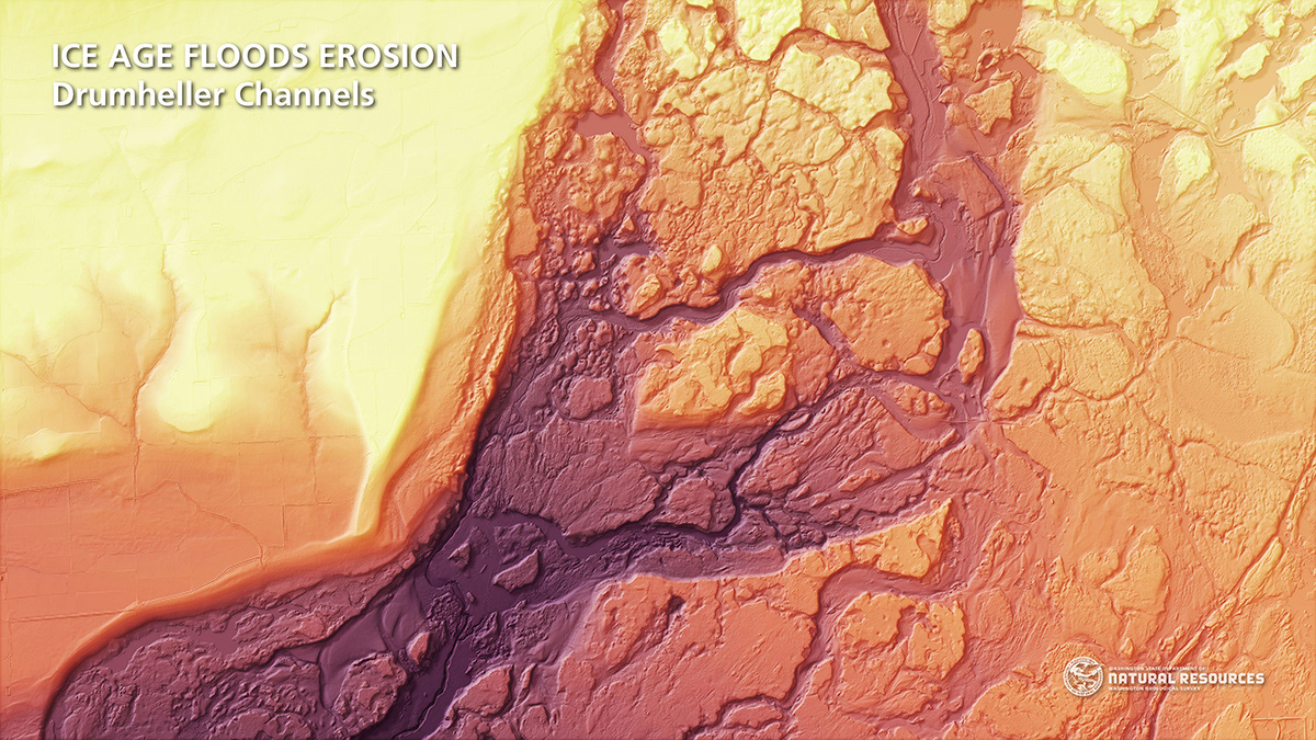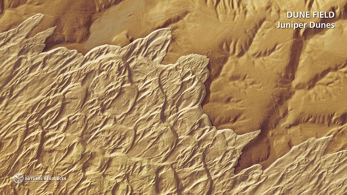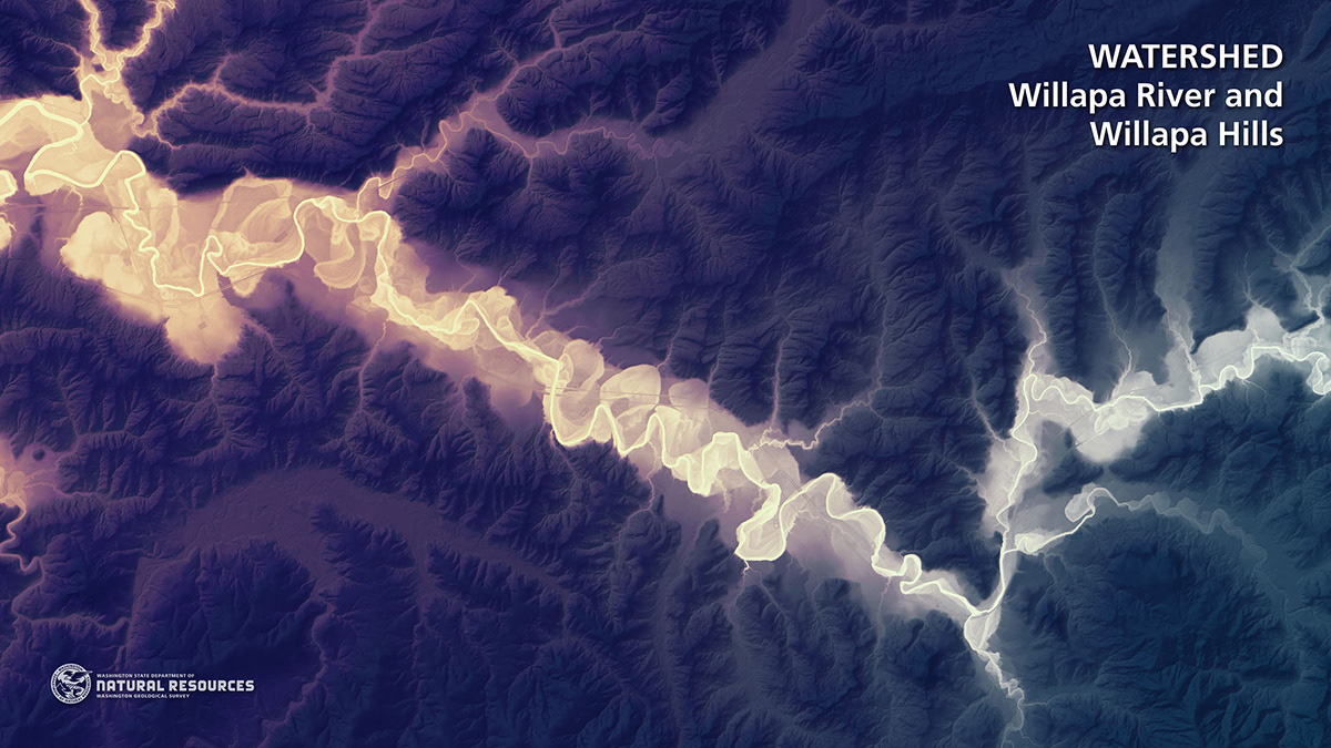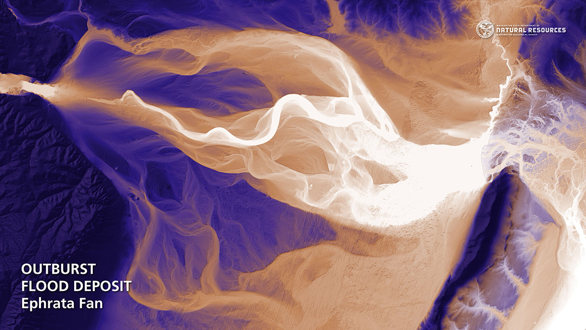Lidar-derived images of geologic and geomorphic features in the state of Washington, USA. Made for the Washington Geological Survey.