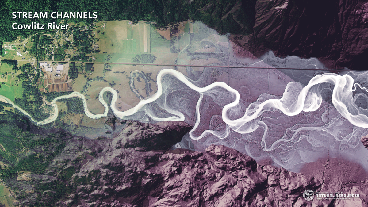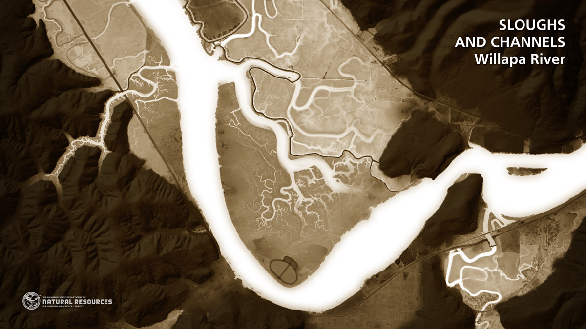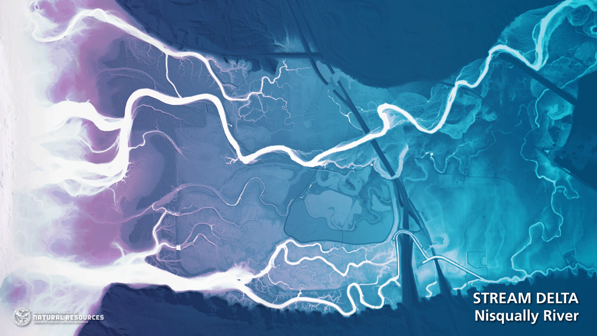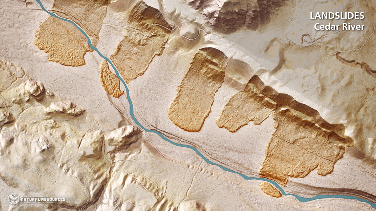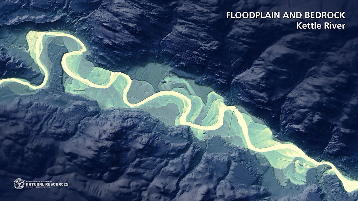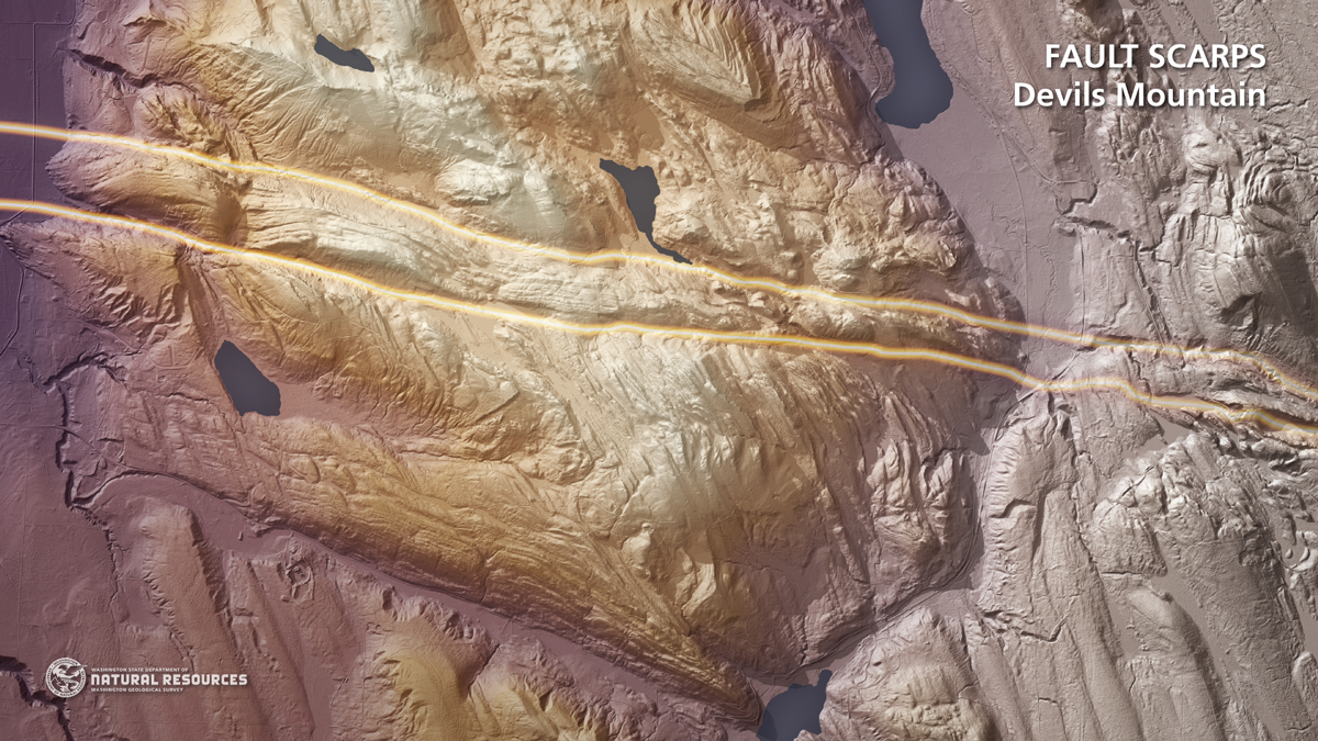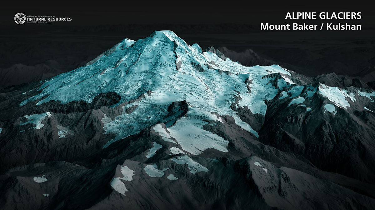 Lidar-derived images of geologic and geomorphic features in the state of Washington, USA. Made for the Washington Geological Survey.